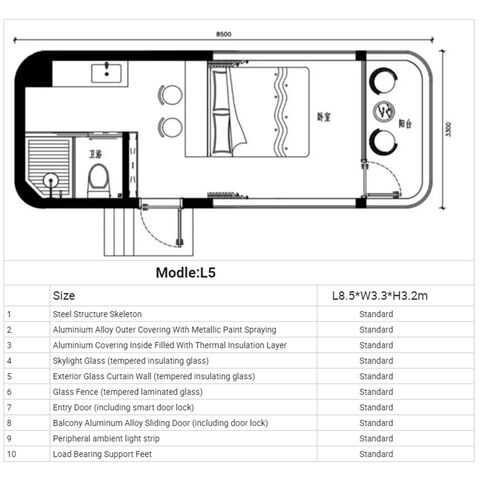 Removable Homes Prefab Capsule House with Sunshine Room, Bathroom & AI Voice Control